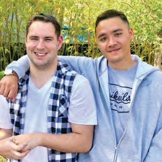 Two male Best Buddies participants with their arms over each other's shoulder