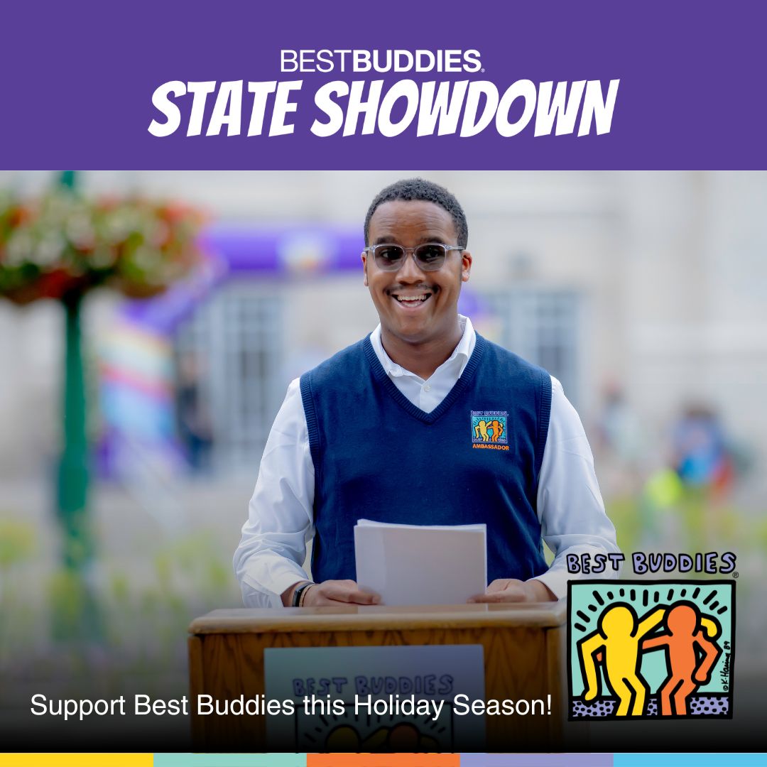 @BestBuddies gives people with intellectual and developmental disabilities all over the world, like Zach, the platform to raise their voices and shine without judgment. Please join me in supporting Best Buddies in <State> this holiday season! (bestbuddies.org/stateshowdown)